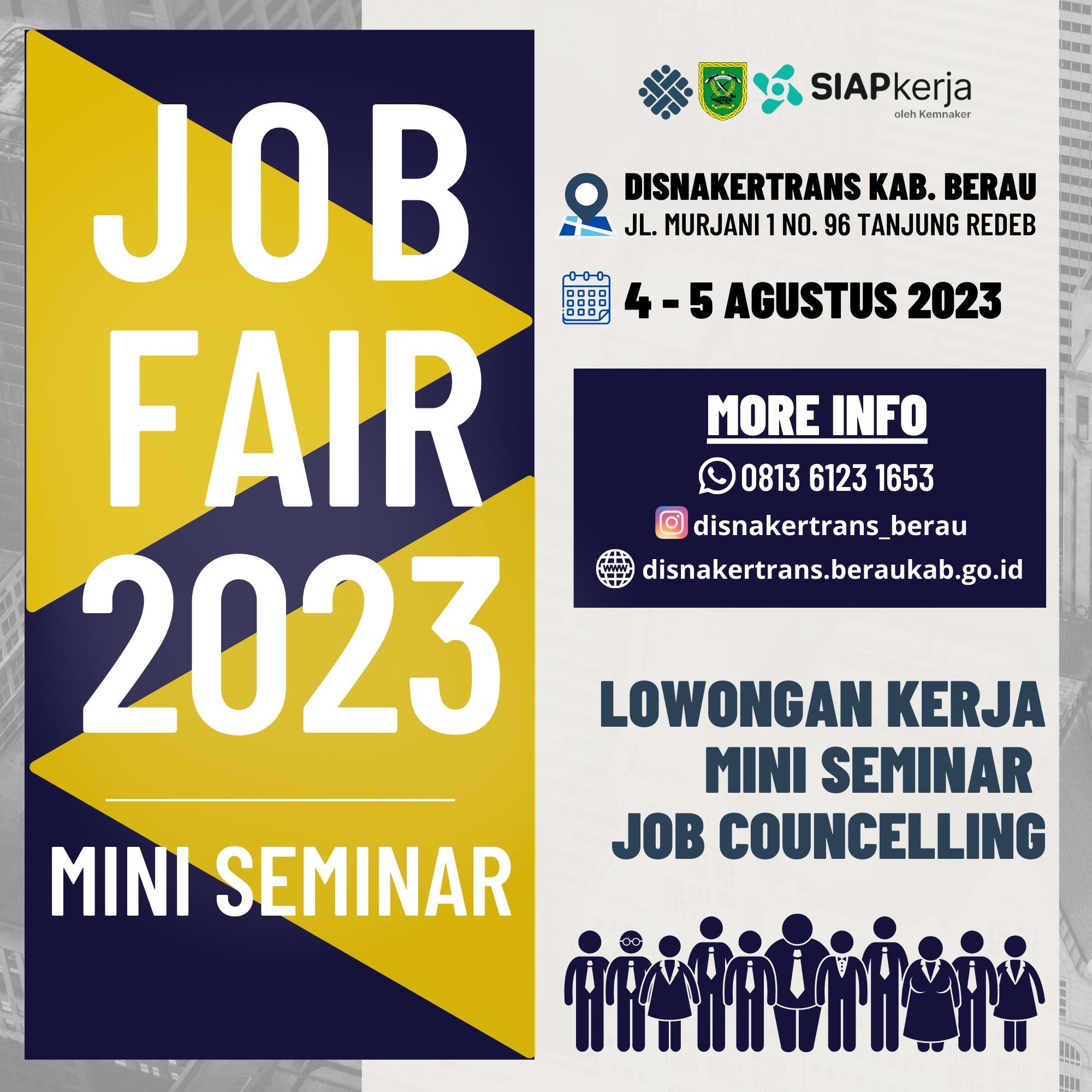 Dinas Tenaga Kerja dan Transmigrasi berhasil menyelenggarakan "JOB FAIR ATAU BURSA KERJA TAHUN 2023" yang merupakan kegiatan ke 3 kali di Kabupaten Berau sebagai kegiatan yang mempertemukan pemberi kerja dan pencari kerja.