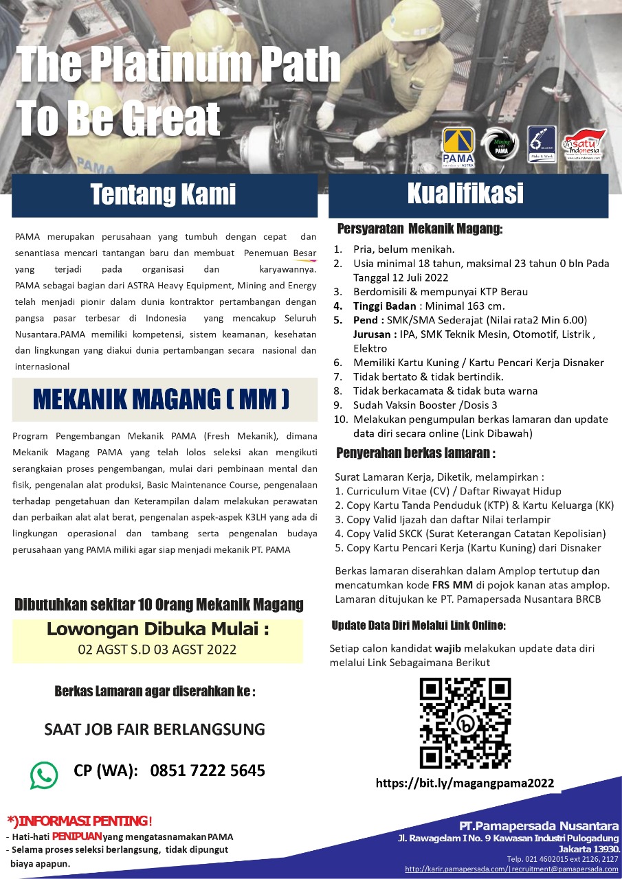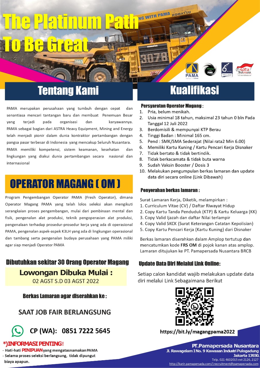 Siapkan diri kalian dengan membuat Lamaran Kerja dan CV terbaik untuk mengikuti JOB FAIR/BURSA KERJA TAHUN 2022 yang dilksanakan DISNAKERTRANS KAB BERAU, dengan lowongan kerja yang ada di bawah ini !!!